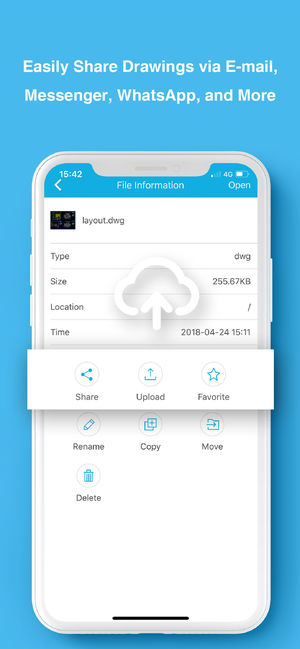 CAD手机看图(浩辰云图移动付费)版集合极速看图和高级制图双模式于一身,支持天正建筑和AutoCAD最新dwg格式图纸的完整显示,提供免费浩辰云存储空间,让您随时随地一键轻松同步图纸!CAD手机看图(浩辰云图移动付费)被CNIT评选为2015年推荐移动版CAD看图软件,全球用户下载量突破1000万! 1.快速高效,顺畅打开天正建筑和AutoCAD最新格式DWG二维及三维图纸; 2.完整显示,首创浩辰云字体技术准确显示图纸信息,告别乱码困扰; 3.精确工具,提供多种测量、标注、捕捉、绘制等专业编辑功能; 4.一键同步,免费浩辰云存储空间,手机电脑图纸轻松同步; 5.轻松分享,支持微信、QQ、微博…