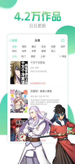 有妖气漫画是国内知名的原创动漫app,现象级大作《镇魂街》、《十万个冷笑话》被改编成动画、电影、真人剧、游戏等多种形式。更有《蓝翅》、《端脑》、《开封奇谈》、《雏蜂》等多部点击量超10亿的高人气作品,日更1000+页,哪里更新点哪里,一站追到底! 【全彩日更】全彩漫画,日更千页 【亿万用户】3.7亿漫迷,陪你畅游二次元 【海量作品】48000部作品,优质漫画追番不停歇 【分类齐全】男生?女生?个性推荐!总有一款适合你