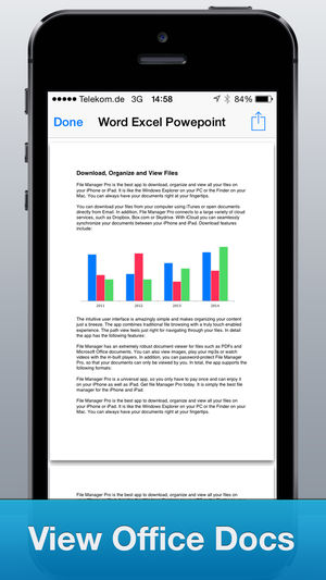 File Manager Pro is the best app to download, organize and view all your files on your iPhone or iPad. It is like the Windows Explorer on your PC or the Finder on your Mac. You can always have your documents right at your fingertips. DOWNLOAD & SYNCHRONIZE You can download your files from your co…