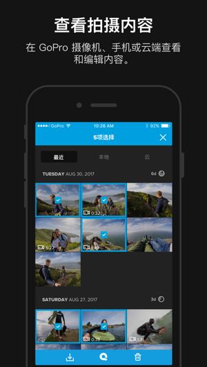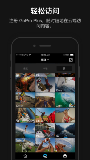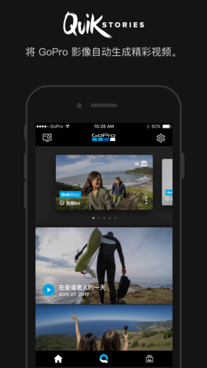通过 GoPro 应用,您的最新影像可移动到手机并自动转换成 QuikStory—自带音乐等效果的精彩视频。[1] 您还可以使用这款应用控制 GoPro 摄像机,查看拍摄的精彩镜头并制作短片。[2] 然后在微信、微博或其他社交平台上分享您的美好时光。[2] --- 关键功能 --- 全新! 流媒体直播 + 实时分享!凭借 HERO7 Black,您可以在 Facebook Live 或支持 RTMP URL 的兼容视频平台上直播流媒体。 获取 QUIKSTORIES 将您的最新影像复制到手机,即可轻松转换成自带音乐等效果的精彩视频。[1] 查看您的照片 + 视频…