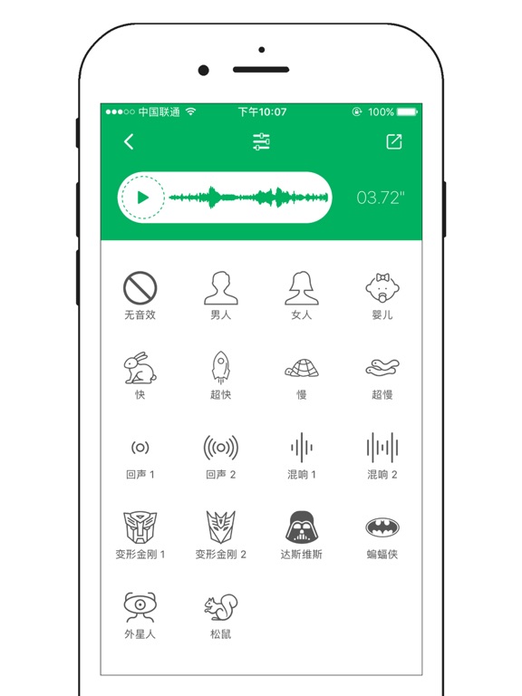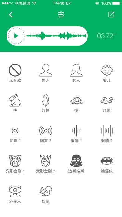 一款超级好玩的声音加特效软件,可以把你的声音变成会说话的汤姆猫、变形金刚、斯巴鲁、电锯惊魂、松鼠等。