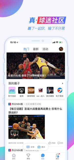 NBA全网独播就在腾讯体育! 腾讯体育,原名“看比赛”,是一款又好看又好玩,有最全的赛事直播、数据、视频,也有丰富社区互动、球星签名球衣、限量球鞋、NBA门票等大量奖品送给大家的APP。 好看,是因为腾讯体育覆盖了最全面的体育赛事直播资源:每赛季1200+场NBA比赛、中超、亚冠、英超、西甲、意甲、德甲、法甲、欧冠、欧洲杯、美洲杯、奥运、网球、NFL、健身、拳击、世界杯、F1、电子竞技、NHL……24小时经典比赛不间断!世界顶级的转播技术和团队,超清1080P蓝光清晰度、原汁原味英文原音解说、多视角、虚拟技术AR、前线采访,轻松满足球迷各种需求~ 好玩,是因为腾讯体育拥有柯凡、王猛、杨…