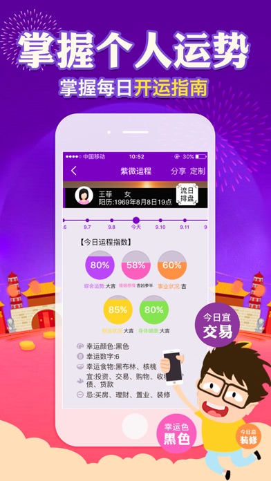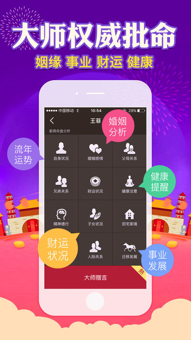 最准的紫微命格详批,从命盘十二宫位所代表的个性特质、事业学业、爱情、财运、健康等呈现给你最完整的命盘解析。 紫微斗数-免费算命最准的APP。 【灵机紫微斗数特点】 1、传统的紫微命理知识,解说深入浅出,专业解盘无师自通! 2、精析各命宫的运势,流日命盘全面预测运程指数,星象吉凶! 3、传授各种开运化灾秘诀,应变人生起伏,趋吉避凶! 4、最专业时尚的紫微应用,操作简易,随身携带,随时随地查看未来变动! 【应用分析内容揭秘】 1、流年运势详批,七大方向详细分析您的流年运程,让您趋吉避凶,各方面顺利发展,每年都有好收获。 2、婚姻感情分析,了解您的婚姻生活状况,爱情观,给出在感情方面的建议,并找出适合於您的婚姻物件。 3、财运状况分析,看出您财运好坏、富有程度,以及金钱的支配使用情况,和赚钱的能力与机会。 4、健康注意分析,看出您的健康状况如何,身体最容易生病的地方,身体的那一部位要较注意保养。 5、事业发展分析,可看出您是否适合创业,可从事何种职业,与上司相处的互动情况等资讯。 6、大师赠言,告诉您自己的缺点及其所带来的负面影响,指出最需要注重的问题,并给出正确的应对方法。 更多精彩内容,可以下载应用亲身体验! 紫微斗数流月分析: 内容:流月分析 时间:一个月 价格:¥40 /月 订购每月运程分析可以通过iTunes账户的信用卡直接付费。付款后将会收到iTunes账户确认购买。 如果当前订购周期(一个月)结束前24小时内未取消续订,我们将会自动为您续订下一周期的每月运程分析。在订购有效期内,无法取消。订购成功后,可在“ 账户设置“中管理自己的订购服务。 详情请见隐私政策网址:http://www.linghit.com/protocol.html