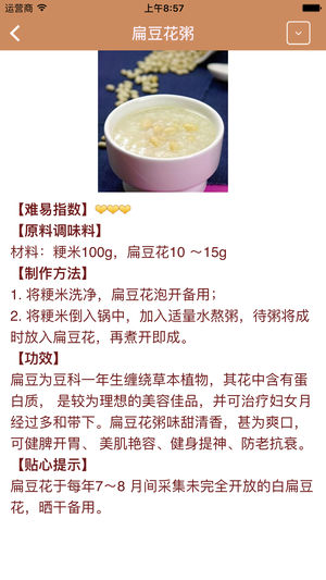 粥是“与人的肠胃相得,是饮食中最好食品”,不仅可以除饥消渴, 暖脾胃, 更是人们生活中不可缺少的养生食物. 用科学的养生方法, 烹饪一锅营养美味汤或粥, 不仅能丰富餐桌, 而且还能满足全家人的营养,健康,养生和食疗的需求。身体健康是头等大事,“中国美食文化:营养粥养生汤食疗药膳食谱大全”帮你更好的照顾自己,父母,儿女和爱人! APP自上架以来数据库不断更新壮大,不仅包括了"食疗"和"营养"的食谱, 还增加了: 美容瘦身, 排毒养颜, 丰胸美白, 补肾养胃等特殊功效的食谱. 还针对幼儿, 孕妇, 老人, 女性, 男性等特定人群制定了特殊的养生膳食餐谱.不管你属于哪一类人群, 不管你有何种养生需…