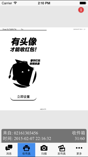当您需要收一个传真,或者需要发一个传真时,GFax能够帮您轻松搞定。 虽然不频繁,但偶尔也需要, 您没有必要为此保留一台传真机,因为手机可以拍照,当然就可以扫描和传真。 为通讯精心打造,无论何时何地,也无需等待, GFax让IPHone更强大。 GFax/传真通,国内数万中小企业和商务人士的选择,现在移动APP在IOS平台上首先发布。 GFax传真通是一款传真、扫描软件,方便用户随时随地收发传真。同时也可以把gfax邮箱作为手机邮箱使用,快速收发邮件。我们致力于将GFax打造成一个多功能的移动通信应用。 GFax提供简便的图像处理功能,把手机拍摄或保存的彩色照处理成便于传真的黑白图片。用户也…