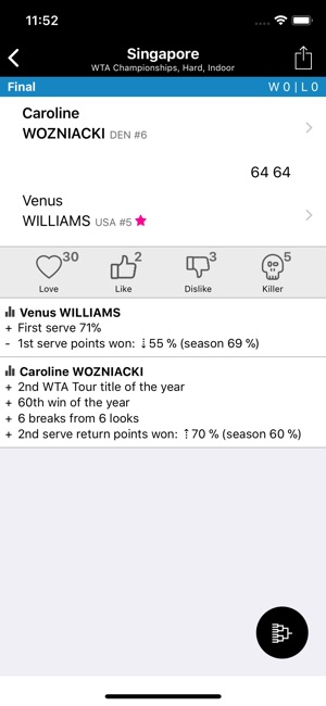All tennis results in one place - ATP, WTA, ITF, Juniors and more. Resultina covers all professional (ATP, WTA and ITF sanctioned events) singles matches as well as ITF Juniors. Features: - Favorite player notifications - results & draws - Tournament calendars - Complete player activity - Player s…