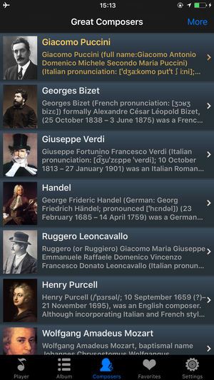 √√带有知识的音乐播放器 您将聆听到33位伟大作曲家创作的99首最好听的歌剧片段, 您将看到伟大作曲家们的肖像, 您将阅读伟大作曲家们的介绍. 您将放松心情, 启迪智慧, 开拓思维, 恢复活力! 听一听, 为了您和您的孩子! √√应用特色 -高质量的音乐 -播放顺序: 随机播放或按顺序播放 -重复模式: 单曲重复, 循环播放所有曲目, 循环播放收藏曲目 -音乐列表: 作曲家音乐列表, 收藏音乐列表, 所有音乐列表 -搜索作曲家或曲目 -后台播放 -锁屏或播放时显示作曲家肖像 -锁屏时播放控制(播放/暂停/上一首/下一首) -摇一摇切换音乐 -睡眠定时 -支持iP…
