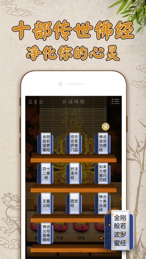 文殊菩萨是主管智慧的菩萨,向她诉说你的愿望,祈求得到好成绩。 为自己为孩子点一盏灯照亮光明前程的灯吧~ 佛灯命火:佛灯之火,永无息灭。佛灯永远照得众生心明眼亮。《祈福明灯》就是一款佛灯祈福并供养佛灯本命佛法相的专业佛教信徒应用。令佛灯在身边长明,无时无刻护佑点灯之人。 佛祖灵签 诚心求签,佛祖会为你指点迷津,针对运势的三衰六旺提供点亮守护佛灯的建议。帮助求签之人达成人生目标並消除障碍。 佛灯本命佛法相 ***大日如来守护灯本命佛法像*** 护佑:阖家平安如意,瑞气盈门,添子添孙,满堂吉庆。 ***财神灯本命佛法像*** 护佑:投资顺利、事业兴隆等一切财富增益事宜(不含赌博等投机事业) *…