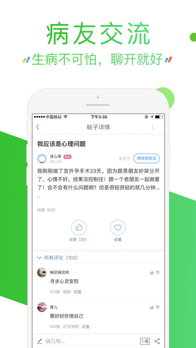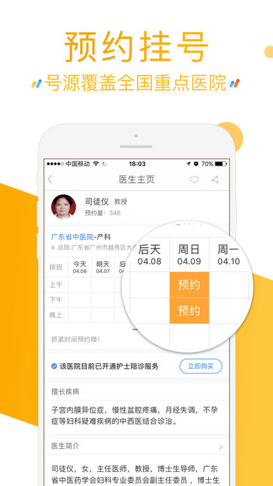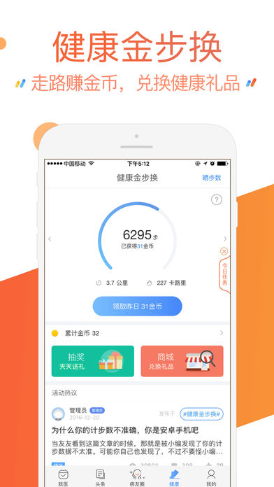 护士陪诊,在线免费问医生,随手查疾病百科、翻阅用药指南,跟病友们一起互动交流;还能每天健身走步赚健康金币。 【专家号源·地域覆盖广】 全国1000多家医院号源,心脑血管、妇产科、生殖中心领域专家号尤其多,您可以根据自己的需要,自主完成预约。遇到困难,马上求助专业的导诊mm~ 【护士陪诊·就医流程更便捷】 专业护士陪您就医,减少繁琐的就医流程,缩短就医时间。 【爱心医生·10分钟内回复】 10万执业医师,7x24小时在线服务。一个问题在半小时内会免费得到1至10位医生的专业回复,来试试嘛~ 【活跃病友·互助你我他】 400多个疾病圈(重点圈子:妇科、肿瘤、小儿精神心理),2000多个医院圈,每天吸引了上万的病友发帖求助交流。他们期待和您一起分享真实的就医经历,聊聊某家医院或医生怎么样~ 【健康金步换,走路赚钱】 每天坚持走路,一天赚250金币。看2017年39健康积分商城上新:九阳电水壶、电烤箱、节能除湿器、电子温度计等50多种实用好礼,都能用金币全额兑换哦! 【对症找药,药品比价】 家庭用药必备,再没有谁比小九更关心您的用药安全啦! #39健康APP获得荣誉# 2016 广东省网络文化精品比赛“优秀移动客户端” 2015 移动医疗圈“医疗健康十佳APP“ #用户评论节选# · 老婆每次去产检,我都会提前约好医生,医院都挤爆头。 · 预约操作很简单,很快就约到医生了。咨询医生的回复也很快,刚提问完就有回复了,质量也很高! · 不仅能挂号,还能参加活动赢礼物。还有病友圈,温暖有爱。 欢迎联系我们哟~~ 官方网站丨www.39.net 用户交流QQ群丨537351472