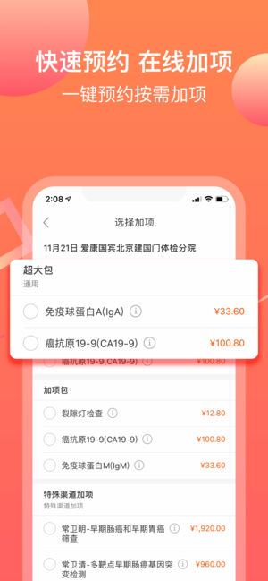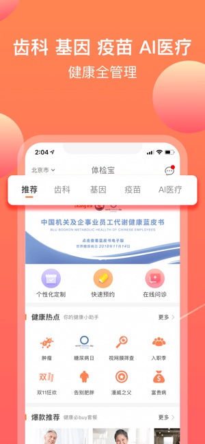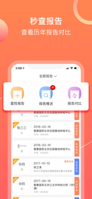 爱康体检宝APP,爱康集团旗下互联网个性化精准健康管理平台,意在打破体检套餐千篇一律的局面,为个人和企业客户量身定制专属体检方案,开启个性化体检的新旅程。 当前覆盖37座城市120余家分院,全方位满足客户健康体检、基因检测、医学咨询、私人医生、疫苗服务、营养保健、运动康复、抗衰老等一站式健康服务。 体检宝特征: 1、人性化:通过个性化体检测试,了解你的身体机能,日常习惯,家族病史,体检病史。 2、权威性:历时5年,国内外医疗专家组成的医疗专家团队,采用推荐体检项目的医疗逻辑,根据国内外权威资料和临床指南,以及体检人实际情况与经验评估所得。 3、经济性:符合卫生经济学要求,告…