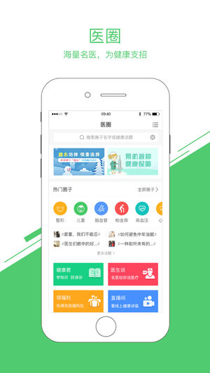 医事通健康服务平台为患者提欧共全方位的就医服务。通过医事通,患者可进行预约挂号、在线跟名医咨询、疾病百科、智能导诊检查报告等胡亮网服务、医事通致力于打造全中国最方便的健康服务平台。目前,医事通是川渝两地医院覆盖最全的健康平台,为川渝两地卫计委合作平台,已介入1500余家医院,可服务医生达到近20万,累计服务人次1500万。 医疗服务:就医更快捷,找医院、找医生、自由选择挂号时段、实时预约专家。预约挂号、检验检查报告查询、排队叫号、充值就诊卡,高效便捷的就诊服务,贯通整个就诊过程。 医圈:名医文章、健康讲座为您的健康保驾护航,更有各种福利领不停。特色圈子、海量名医,每天输出高质量健康小短文。更…