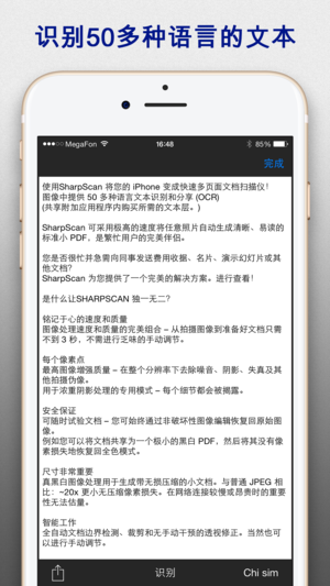使用SharpScan 将您的 iPhone 变成快速多页面文档扫描仪! 图像中提供 50 多种语言文本识别和分享 (OCR) (共享附加应用程序内购买所需的文本层。) ***** 转换pdf超赞 (GregBai) ***** 设置简单 (月中走) SharpScan 可采用极高的速度将任意照片自动生成清晰、易读的标准小 PDF,是繁忙用户的完美伴侣。 您是否很忙并急需向同事发送费用收据、名片、演示幻灯片或其他文档? SharpScan 为您提供了一个完美的解决方案。进行查看! 是什么让SHARPSCAN 独一无二? ◆ 铭记于心的速度和质量 图像处理速度和质量的完…