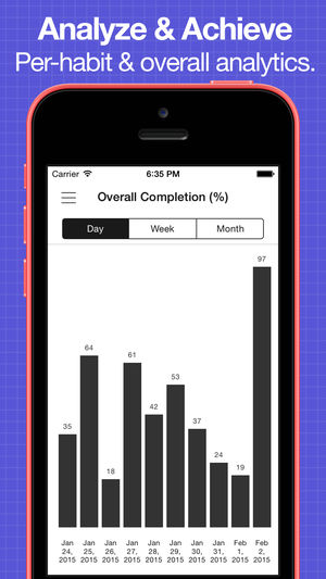 Daily Goals - Track. Analyze. Succeed. An ultra simple and colourful app that helps you keep track of your habits. BUILD HABITS - Create and track unlimited habits. - Configure the name, colour, start & end dates, reminder time and schedule for each habit. - Schedule habits to repeat on specific d…