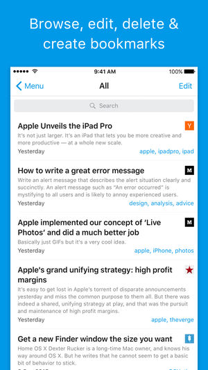 "The best Pinboard app for iOS" - The Sweet Setup Pinner is a fast, full-featured app for your Pinboard bookmarks. Designed for all users of Pinboard, you can browse, edit, read, manage, and much more. Pinner has cutting-edge iOS integration including Share Extensions, Spotlight Search, Today Widge…