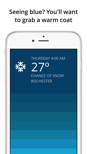 Blue visualizes your 7-day weather forecast in a fast and colorful interface. Swipe up to see hourly weather represented by color in a unique visual gradient, helping you quickly recognize weather patterns and plan your day accordingly. Hourly colors are calculated based several metrics including…