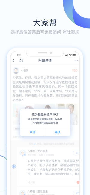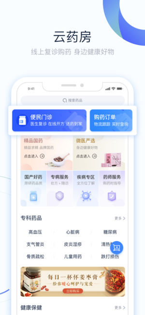 微医(原挂号网),互联网医院国家试点平台,聚合了全国30多个省份的2700多家医院、7500多位学科带头人、20万副主任以上的医师,已为5.8亿人次提供预约挂号、在线诊疗、电子处方、在线配药等全方位就医服务,是中国互联网医疗的领导者和中国新型医疗服务体系的构建者。 主要功能: 【预约挂号】 号源覆盖超过70%的三级医院,连接30个省市的117家医联体,并提供VIP号源提醒,专属客服等服务,助您摆脱排队烦恼,轻松实现预约挂号。 【极速问诊】微医优选三甲医生,15分钟快速响应,深度交流不限次数,专科咨询对症寻医。 【云药房】 专业医生团队全天候服务,上千种OTC和处方药品,一键下单,送药到家。此…