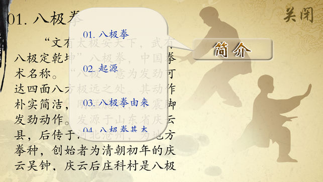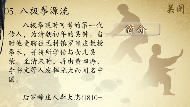 “文有太极安天下,武有八极震乾坤”,它是武术界的一句行话,从而可见八极拳在武术中的地位。有人认为,“八极拳”就是戚继光《纪效新法》中所说的“巴子拳”,明末清初始改称八极拳,取名八极为八方极远的含义,要求习者练武要精益求精,以远致极。并且以向“四面八方外撑”的“十字劲”,作为该拳的主要劲法。 八极拳的动作要求“含胸拔背”,“沉肩坠肘”,发力时讲究“以气催力,以声助势”。其劲力多以“十字劲”、“撞靠劲”和“沉坠劲”为主,它是中国民间武术中最有影响的拳术。 八极拳发力刚劲、爆烈骤变,跃进中以势险而夺人,进击中以节短而取胜。八极拳法已传11世,遍及华夏…