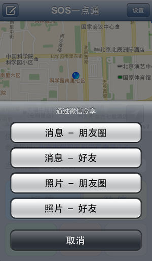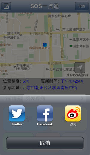 SOS一点通是您日常生活中必备的一款应急求助软件。当您外出遇到任何意外情况时,可以通过该软件以最快的速度向家人和朋友发出求助信息,包括一键发送求助短信或邮件,通过微信、微博发送求助消息和现场照片,或一键拨打求助电话。求助消息包含您当前所处的准确地理位置和具体发生的情况,并可以选择附加您事先设定的当日行程和其他个人信息,便于家人和好友准确了解当前情况,及时提供最有效的帮助。 位置信息包含了您当前位置的中文地址名称、Google地图链接、位置精度及获取时间。邮件和微博发送的信息中还会附加当前位置地图图片。优化过的Google地图链接避免了中国区用户位置显示存在偏差的问题。 定位功能综合利用了g…