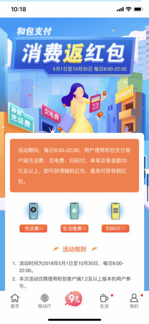 和包支付是中国移动电子商务有限公司所有,是中国移动针对手机推出的综合性生活服务平台。目前,和包支付已发展成为融合了支付、生活服务、购物等多个场景的开放性平台。用户可通过和包支付客户端在手机上不仅能使用中国移动提供的移动支付服务,如缴话费、收付款、生活缴费、订单支付等,还能在电子券商城购买商品和服务,在带给用户随时随地随身的移动支付体验的同时,还可确保用户交易的安全性和便捷性。 主要功能包括: 1、话费缴纳、流量充值; 2、生活缴费(水费/电费/燃气费); 3、收付款、订单支付、账户充值、提现、账户及交易明细查询、注册和更新; 4、在电子券商城购买商品。