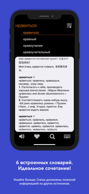 俄汉词典 – 7 in 1 俄-汉-俄词典 我们的俄汉词典是iPhone用的汉-俄-汉词典。 这本词典具有简单而易于使用的用户界面。并且给用户提供需要的所有词典。许多用户们已经高度赞赏我们词典的便利性和有用性了。 - Great Chinese-Russian Dictionary(大БКРС)的最新版本 - 1,524,994介词 - 合并了两本主要俄汉词典 - Great Chinese-Russian Dictionary(БРуКС)和另外个俄-汉词典跟175,151介词 以下罗列的词典是对学俄语的人特别有用的: - Russian explanatory dictionary…