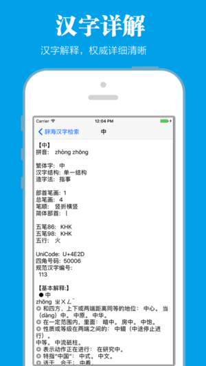 简介: 辞海,是<新华字典>和<辞海>二合一,无需联网的随身字典词典 主要功能: --- 强大的离线功能 --- > 所有的数据都在本地,不需要连接网络 > 因为离线,随时随地都可以翻阅 > 离线版,同时保持合理的大小,省空间 --- 强大的查找功能 --- > 支持手写输入,汉字检索功能 > 支持方便的简拼检索功能 > 支持强大的首字匹配检索功能 > 支持实用的尾字匹配检索功能 > 支持无敌的模糊检索功能 --- 强大的字典解释 --- > 支持经典的拼音 > 支持详细的词语解释 > 支持更多全面解释 --- 全面的支持--- >支持 iPhone, iPa…