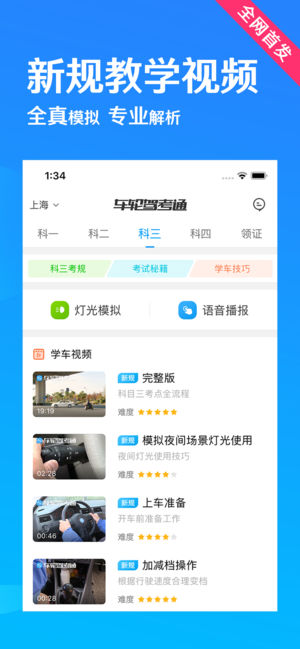 车轮驾考通,你的驾考通关神器!科目一、科目四为你提供全真题库+官方解释,直连权威数据源,实时更新题库,学车必备练题软件!科目二、科目三为你打造:独家高清教学视频+权威解析!帮助超过1亿学员顺利拿到驾照。全国驾校教练指定推荐驾考教学软件,学车必备,轻松拿驾照~ 【产品特色】 1、全新题库:恪守2019年新版全国机动车考试大纲,涵盖完整的小车、货车、客车、摩托车题库以及各地方题库,每周更新,每题都有官方解释; 2、智能答题:快速过理论!千人千面,考点归类,打造每个人的题库集; 3、专项突破:科目一/科目四大数据整理分析,考点归类,易错题集; 4、教学视频:科目二/科目三专业讲解视频,车轮独家…
