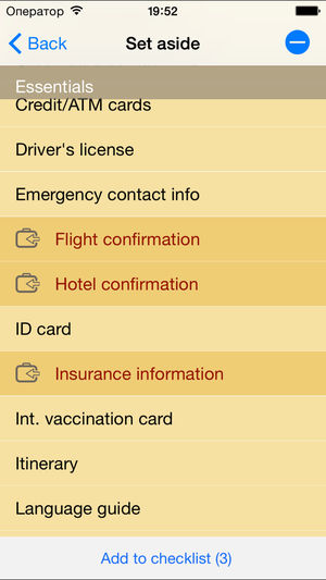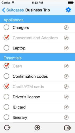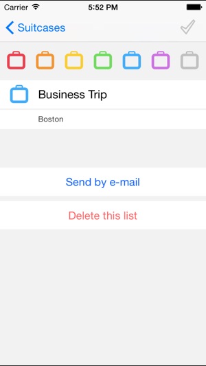 这款应用程序将帮助您安排好任何旅行的打包工作。 您可以创建自己的清单,类别,添加新的物品,其分类并编辑,通过邮件与朋友们分享清单内容。 使用起来就像使用一支笔和一张纸一样简单,而且更加实用。您可以为不同目的的旅行创建不同的清单。 您可以和同样也安装了此应用的朋友们分享你们的打包清单。 安装此应用程序后,程序内包含有几个基本的清单,总计大概100件物品。 您可以根据需要添加自己的物品,创建新的类别,删除不必要的物品。 简单添加新清单,删除现存清单。 还有一项重要功能就是您可以创建基本清单然后将新清单结合在一个或者多个基本清单里!新的清单将囊括所有被选中的基本清单里的物品。