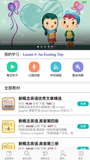 新概念英语,享誉全球的最为经典地道的英语教材,以其完整、严密的英语学习体系性、严谨的科学性、精湛的实用性、浓郁的趣味性深受英语学习者的青睐。帮助学生快速掌握英语的3项基本技能——听、说、读,使学生能在学习中最大限度地发挥自己的潜能。 【新概念英语1-4册】 1、第一册英语初阶(基础班) • 学习英语的敲门砖(First Things First) • 讲练基本语音、语调(包括所有的音标、连读、同化)及英语中的基本语法、词法、句法及句型结构知识。 • 学好第一册,是练好英语基本功的关键,适合于英语基础差,欲在短期内掌握英语基础的学习者。 • 掌握后,可以参加中考一类考试。 2、…