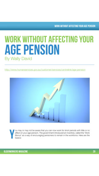 Older Workers Magazine linking mature age job seekers with age friendly employers. Employers looking for reliable, experienced workers can increase their applicant pool by attracting older workers Older Workers $2.99 www.olderworkers.com.au Older Workers Subscription available: A single issue for $5.99 (non-subscription) 1-month subscription for $2.99, automatically renewed until cancelled Payment for all purchases will be charged to your iTunes account at the confirmation of your purchase. SUBSCRIBERS' AUTOMATIC-RENEWAL FEATURE: Your subscription automatically renews unless auto-renew is turned off at least 24-hours before the end of the current period.