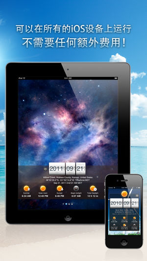 日出日落 HD 是一款非常强大,非常易用的计算任意日期日出时间、日落时间、日照时长、正午时间、黎明时间、黄昏时间、月相等信息的应用程序。 它不仅可以计算出当天的时间,还可以计算出任意位置的过去或者未来的时间。 日出日落 HD 使用 iPhone 或者 iPod touch 的机能来定位和检测当地的经度和纬度,之后利用这些信息用来进行相关的计算,所以你不需要选取位置就可以显示出当地的信息,一切都是自动化。 除了可以使用当前位置以外,日出日落 还包含世界所有城市的位置信息,用来显示日出日落等时间。 当使用数据库的位置时,日出日落不需要 WIFI、蜂窝数据网、和GPS信号就可以计…