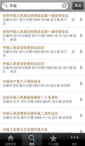 全网最全,信息最丰富,支持iPhonoe/iPad等所有IOS设备,图片文字资料均为离线使用!从清代第一枚邮票至2013年所有的资料尽收于此!图片支持手势滑动操作,快速阅览,随时收藏,给您不一样的体验!同时支持邮票名称,志编号,设计者,发行日期等搜索。 邮票目录: “纪”字头纪念邮票 “特”字头特种邮票 “文”字邮票 “J”字头纪念邮票 “T”字头特种邮票 加字改值邮票 编号邮票 编年邮票 普通邮票 个性化服务专用邮票 包裹邮票 欠资邮票 航空邮票 军用邮票 自动化邮票 贺年专用邮票 特别发行邮票 台湾地方邮政邮票(清) 限地方贴用邮票(清) 国家邮政邮票(清) 海关邮政邮票(清) 未发行邮票 中华民国时期邮票 土地革命战争时期邮票 抗日战争时期邮票 解放战争时期邮票 首日封