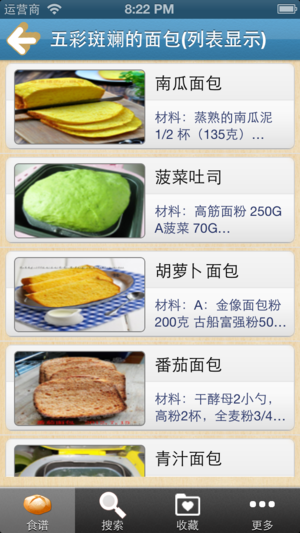 说到做面包,大家首先想到的就是繁杂的准备工作,购买食材,按比例称重,打发,揉面,等待发酵,真是费时有麻烦。作为上班族我们,哪里还有心情来弄这些呢?不过,现在有了面包机的出现,就算是零起点也能轻轻松松做面包。也正是因为绝对天然,不含防腐剂和添加剂才让自己制作的面包更加健康。 本软件精选了近150多种面包机烘焙面包的配方,包括材料配方和做法。不仅有各式的面包做法,还有使用面包机做蛋糕、甜甜圈风味主食(饺子、意大利面)等。 离线浏览,不用联网也可以浏览,速度快,无广告。