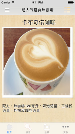 精选了200道经典的冰热咖啡详细配方,将冰热咖啡华美魔幻的视觉效果和丰富的口感呈现在您面前,方便您在家中阅读制作和咖啡师参考借鉴。 为自己,为家人亲手煮上一杯浓情蜜意的咖啡吧,美味自不用说,单单那份做咖啡的心情就足以让人完全陶醉其中。口中品尝的是咖啡,而在心中品味的确是生活。入口苦涩,入喉甘甜,入心舒,生活之意尽显其中。如果你是一位热爱生活的人,那么你就很可能是一位喜欢咖啡的人。如果你心动了,那么就请你随我们一起来品味优质的的咖啡、品味雅致的生活吧。 离线浏览,不用联网也可以浏览,速度快,无广告。