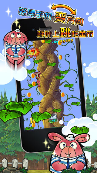 跳>>晃手机;跳>>吃金币;跳>>踩敌人;跳>>集彩蛋! 极简便的重力感应单手操作,带来无限的成就感与快乐!不管你是高手还是小白,都能在蛋与藤的畅快游戏中得到无穷的乐趣! 【媒体推荐】 ★AppGame.com(任玩堂)——幽默搞笑风味十足的休闲游戏,错过“蛋与藤”一定会蛋疼! ★爱Apps——轻松诙谐而由不失风格的休闲之作。画面精美,简便的重力感操作极易上手。 ★i.07073.com——轻松搞笑的重力动作游戏,简单的操作和精美的画面带来了丰富的游戏乐趣。 ★《iTouch触控》杂志年底力荐 ★18touch(超好玩)——本作的趣味性,挑战性兼备,相信喜欢上跳休闲类游戏的玩家会喜欢上这款游戏。 【游戏介绍】 好奇心旺盛的兔子艾吉这回钻进了魔术师的小丑盒里,再出来的时候发现自己被弹到了一根钻天的巨藤上。艾吉好奇的想知道巨藤的顶端有什么,于是勇敢地踩着巨藤的叶片一直向上。当心哦艾吉,向上的路途并不轻松。能否在各种蛋的帮助下登上顶端,一切就看你的了! 【游戏特色】 ★简单易上手的操作方式,老少咸宜。全家人一起快乐游戏。 ★风趣幽默的Q版造型,各种搞怪的动画,让你乐翻天 ★丰富的成就挑战,可以带来更多的回报。挑战高分,就看你的耐心和技巧了。 ★多样的道具蛋和藤叶,让向上的路充满变化。 ★各种造型敌人,多样的行为模式,高手才能躲开它们。 欢迎关注我们的官方微博: http://weibo.com/astepgame