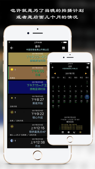 也许您正在寻找一个这样的应用,可以帮助您计划风光摄影各种细节。不用再找了,这个应用就是,它就是PlanIt!。不管您喜欢风光摄影的哪个方面,旅行,城市,自然,夜景,星空,银河,星轨,延时,这个应用都可以帮助到您。 著名美国摄影师安塞尔•亚当斯在他的第一本书《Taos Pueblo》强调了“可视化”的概念。他提出“预可视化”,也就是说摄影师应该在按下快门之前就想象出最后出来的照片会使怎样。当然,很多伟大的照片是即兴拍摄出来的,但是对于风光摄影师来说,如果可以提前预见到场景的样子会很大程度上避免因为没有准备好而错失良机,也会大大增加出好片的机会。 英文视频教学: https://www.youtube.com/watch?v=bna8_Mj8Bso&list=PLTmlTTxPbBbeu8Yx4paLUytV8z60SSL_w 中文视频教学: https://www.youtube.com/watch?v=70_M2tDmyec&list=PLTmlTTxPbBbc99ojiYHmt_HiLTqXODpk3 或者 http://list.youku.com/albumlist/show/id_49707951.html?sf=10101 现在科技发达,摄影师可以使用很多不同的工具实现场景的预可视化。当然,手机应用就是很多这样的工具之一,而且越来越流行。我们这个《PlanIt!摄影计划神器》(简称Planlt或者planit) 就是这样的一个全功能的应用。它巧妙地利用地图结合各种摄影工具和日月银河星历功能,来实现场景预可视化。 在这个看似简单的应用里面,我们加了很多的功能。比如说任何地点的GPS坐标、海拔高度、两点距离、海拔高度差、以及从某一点是否可以看到某个景点。这些信息不单对摄影师,可能对很多热爱旅游的人来说,都是重要的。而对摄影师,我们还专门提供了焦距(水平方向和垂直方向),景深、超焦距和全景工具。不仅如此,我们还加入了星历表的功能。这样您就可以查到任何一天任何地点的日出日落时间、月出月落时间、曙暮光开始结束时间、黄金时段、蓝色时段。甚至任何时刻的太阳和月亮的位置你都可以查到。还有星星、星座、银河、星云的位置。另外还有星轨计算器和延时摄影计算器功能,曝光自动计算,ND滤镜计算器。可以说是风光摄影需要的功能,应有尽有。和其它类似应用不同的是我们这个应用把上面提到的所有功能都在地图上或者取景框方式下直观地显示出来,各个功能之间还可以结合使用。