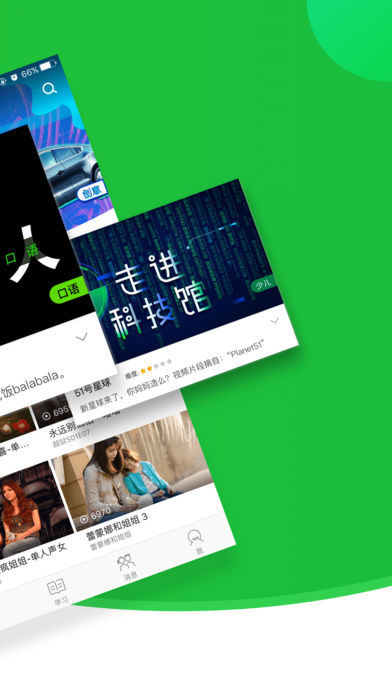 英语趣配音,每日更新最热的英语视频,让用户在英语配音的过程中化身成为大片主角,跟着影视原片开口说英语,彻底摆脱枯燥无味的单词语法。 1.【素材丰富】火爆的视频、最喜欢的歌曲、追了很久的动漫、英美剧,多类型丰富的视频配音素材,应有尽有! 2.【全新方式】摆脱枯燥传统的学习方式,通过配音学习英语、提升口语听力。配音打分、生词翻译、作品分享,随时随地玩转配音! 3.【经典教材】还原历年大学英语四六级考试、新概念英语等各类考试真题情境,专业团队制作教育视频课程,内容丰富,更好备战英语考试! 4.【兴趣群聊】这里有诸多爱好英语的男神女神、配音达人,时刻关注ta的最新动态,及时聊天,发现你的兴趣圈子!同时,将你的配音作品分享到朋友圈,接受膜拜!