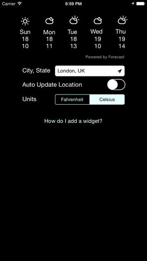 新:天气预报小工具现在支持自动更新根据您当前位置的天气。这个新功能是完全可选的,并且已被设计为作为电池有意识地使用低功率geofences。 天气预报Widget是一个伟大的新的iOS8今天的Widget,让你,一目了然,看天气五天预测世界上任何城市。预测小工具是使用应用程序配置,但真正的价值在于为可添加到您的卡今天在通知中心,可以很容易地检查你的城市的天气在未来5天的小部件。 只要安装该应用程序,启动它,然后选择一个城市,然后添加小部件通知中心的今天选项卡。注意:您可以重新排列小部件,一旦你加入他们。我们建议把它朝上方所以它总是很容易访问的天气,即使在您的设备已被锁定。 - 全球…