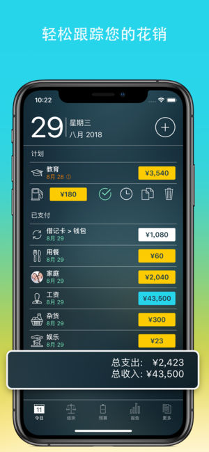 轻松做预算。 使用 Money Pro® 来削减开支! Money Pro 提供一站式账单计划、预算管理和账户跟踪。 本应用程序拥有轻松同步功能,iPhone/iPad 合用同一版本。 Money Pro 是家庭预算乃至商务应用的理想之选。用户手册中文版能为您提供很大的帮助。 Money Pro 是下一代理财应用程序(全球下载量超过 200 万)。 现在您可以使用网上银行了。Money Pro 将连接到您的银行并下载您的交易。 功能 日历 - 在大日历中标出账单到期的日子。 - 设置可自定义周期的重复性账单。 - 通过在日历中选择日期来筛选交易。 今日视图 - 快速查看到期账单。…