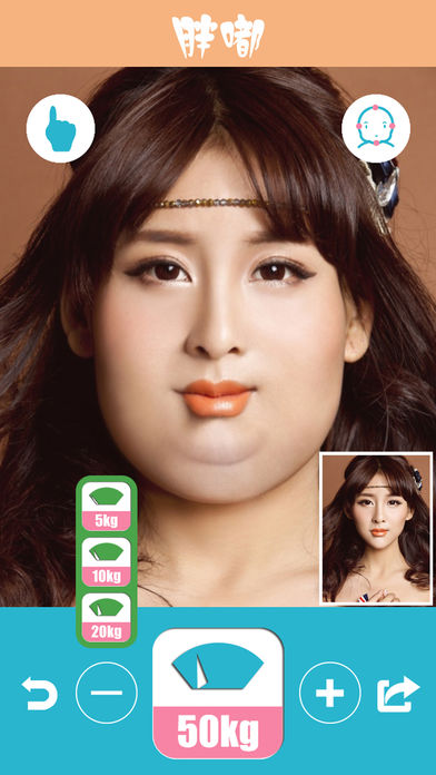 想看一下自己变胖的样子吗?想看一下自己的朋友变成胖子吗? 胖嘟可以满足你的愿望,分秒钟变胖子! 主要特性: - 精确智能定位脸部特征:眼睛、鼻子、嘴巴等 - 支持从内置的相机,相册中选取照片 - 支持多种体型,可选择增加5公斤、10公斤、20公斤、50公斤等 - 支持保存到相册中 - 支持多种分享方式,可以通过微信、微博和qq,fb等将对比照片分享给你的好朋友!