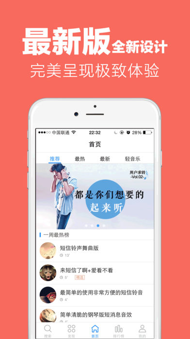 *** 5千万用户正在使用,AppStore排名第一铃声! *** 超10万好评,装机必备! *** 1键同步设铃声,iPhone铃声设置竟如此轻松! *** 1百万海量铃声,最全最大个性铃声库! *** 24小时热门铃声实时更新,潮流铃声任你选~ ===== 产品特色 ===== 【1键同步设置】 通过铃声助手一键传输喜欢的铃声到电脑,同步变得如此简单! 【1百万海量铃声】 最全最大个性铃声库,只要你想要的,这里都有。 【iOS 9全新设计】 独特设计交互风格,完美极致体验,让爱机瞬间享有高端品质,一秒高大上。 【24小时热点不断】 小编时时运营,最新流行,最热潮流,最火铃声。铃声响起,瞬间惊呆小伙伴。 【100+专业分类】 影视热门,流行金曲,经典音乐,游戏动漫,最新神曲,搞笑卖萌,只要你喜欢的,我们都知道。 【1键个性搜索】 突然听到一首好听的歌曲,好想据为己有,马上一键搜索,立即get√ -------------------------------------- 商务合作QQ:2850157163 --------------------------------------