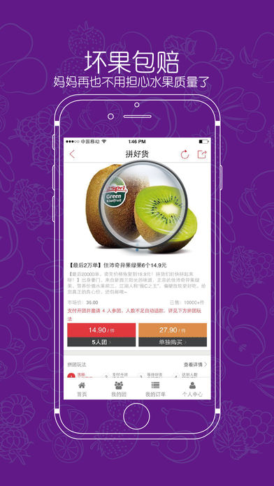 拼好货是一种全新的水果网购方式,是真正意义的团购。用户通过发起和朋友、家人、邻居拼团购,以更低的价格,拼团买到优质水果。 -一起拼,更便宜:拼好货的百万拼友一起拼,好货也便宜,水果天天特卖!所有水果包邮到家! -产地直购:拼好货深入水果产地,进入市场第一线,天天果园直採,优选最靠谱的水果好货,让您在家就能轻易品尝从树上到舌尖的新鲜。新鲜水果,开启您的每日鲜生活。 -坏果包赔:拼好货拼团商城力求每一份水果都是美果优鲜。如有坏果,立即包赔,完善的售后服务,力求第一时间让您满意。 -流程简单:拼好货的拼团简单有趣,快易便利。24小时内不成团就退款,天天优惠券,红包发不停。 -高效物流:拼好货将新鲜水果,配送到家。拼好货商城有自己的电商快递系统和高效物流体系,极速发货,每一步清晰可见。配送员将您拼团的鲜果,从配送中心配送到位,让您在家就能品尝美味鲜果。 拼好货从原产地和一级市场挑选优质水果,通过配送快递直达您的手上。拼好货希望每一步都可以透明化:水果从产地配送到家,每一步可以看到。拼好货商城同时支持微信支付、支付宝支付、账户余额支付等在线支付方式,快易便利。 拼好貨拼团商城现在覆盖了全国7大区,关注weixin微信公众号:拼好货商城、拼好货华北商城、拼好货华南商城、拼好货华中商城、拼好货东北商城、拼好货西南商城、拼好货西北商城。 拼好货:一起拼,好货也便宜。如果你也爱拼团,爱鲜果,就请下载打开拼好货,随时开启您的每日鲜生活!