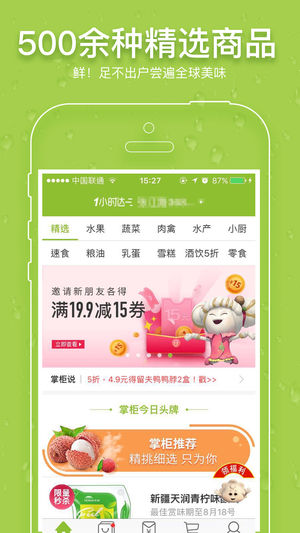 生鲜美食移动电商领导者,中国果品协会常务理事,中国电商物流协会副会长,1小时极速送达(核心城市), 追溯最源头的商品供应链以及科技创新物流模式。 【1小时极速达】在上海,上班地铁下个单,水果零食比您先到公司;下班时下个单,生鲜食材即刻送到家。北广宁杭苏锡福厦的1小时极速达,我们马上就来了。 【次日达】浙江,江苏核心城市,美食水果生鲜次日到达,全程冷链配送。 【拼团特卖】华东,华北,东南区域覆盖特卖拼团,邀请好友一起拼超值特价水果和美食。 【100%全程冷链】供应链的奇迹:实现40度的高温,冰激凌1小时内冰镇送到。其他食材从产地直发舌尖,只为你的那一口新鲜。 【坏品包退】如您收到的水果生鲜有质量…