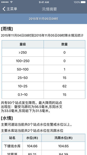 本系统通过在GIS地图上展示区域内的台风路径、卫星云图、气象雷达图等信息。系统界面风格简洁、展示方式多样、数据加载快速,为防汛指挥作出快速、 正确的决策。