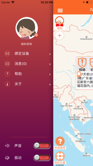 九护是一款好友家人之间的好友定位,手机定位追踪软件和定位跟踪软件,实时定位、精确定位、超级节约流量。 关闭网络了也能手机定位,而且防伪装定位,很实用的定位软件。 我们的宗旨是“您的放心,是我们永远的追求!”,让用户实时定位追踪自己关心的人位置在哪里,放下那份惦记的心。 1、定位双方都需要安装本软件,并授权,这样就可以实时定位对方手机,还可以发短信对方手机进行网络定位。 2、由领先的百度提供定位算法,精度可以达到10米以内。 3、主动汇报位置,实时定位,让家人放心。 4、所有位置都进行MD5加密,隐藏定位,安全放心。 5、超级节约流量,其他定位软件都是定期上传位置,这样浪费消耗很多流量,位…