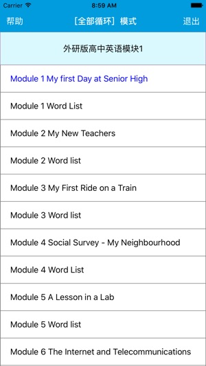 本应用对应外研版高中英语必修1课本,具有跟读模仿,自动听写,变速播放的复读机功能。 该应用支持跟读模仿,单次播放,单课循环,全部循环和听写的五种模式。它实现了实时评价用户跟读模仿的发音,并根据评价结果决定是否重新跟读。它以盲听跟读为设计原则,用户不需要反复触摸录音播放按钮,而是一键跟读,高效地练习口语。它还实现了单课循环,全部循环和智能分段功能。其中,智能分段可以让您免于寻找回放点,提高听音效率。在听写模式下,它提供了快速,常速和慢速三种模式供您选择。它贯彻了跟读模仿练习英语口语和通过听写练习英语听力的有效学习方法,让更多的学生摆脱哑巴英语,促进听力和口语相互提高,助力英语听力口语考试。
