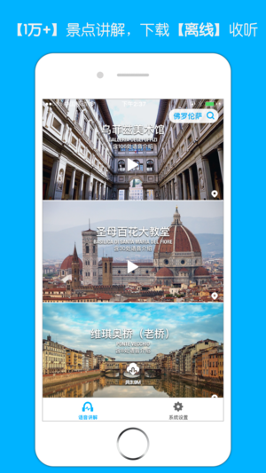 最专业的全球旅游景点中文语音讲解,尽在口袋导游。内含2万+景点语音讲解,覆盖80+旅游城市,是您自由行旅行必备神器, 为您提供旅游景点深度讲解 [口袋导游pro版专享] * 全球各大旅游景点中文讲解全部免费下载 * 一次购买, 新增景点永久免费更新 [主要功能] * 提前下载,离线播放, 在景点没有网络照样使用 * 景点全覆盖,提供景点内每一处介绍的中文语音讲解 * 景点自动定位功能, 走到哪听到哪 * 真人配音, 为您提供真人导游的讲解体验 [覆盖城市] 巴黎,罗马,佛罗伦萨,威尼斯,比萨,米兰,巴塞罗那,布拉格,卢塞恩,伦敦,日内瓦,布达佩斯,京都,慕尼黑,柏林,维也纳,阿姆斯特丹…