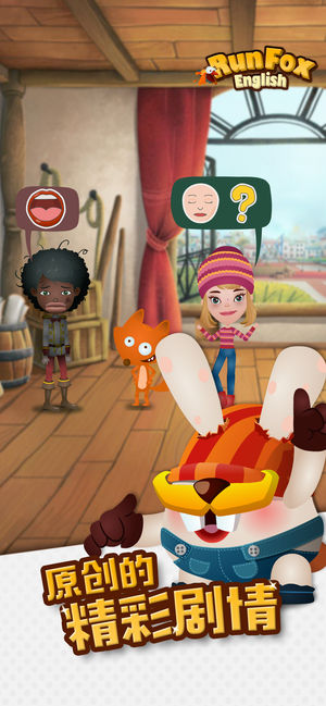 RunFox( 狐狸快跑)让孩子成为故事的主角! 孩子的语言被魔王偷走了!于是,孩子与天真的小狐狸Ben,聪明的Emma和勇敢的Bobby一起,踏上击败魔王、找回语言的冒险之旅,学习如何用英语交流、生活;日复一日,当孩子在游戏中完成使命,找回语言的时候,孩子也自然掌握了纯正的英语听说能力。 ===== 产品功能特色 ===== 【海量原创内容】 - 超过300集的连载动画,让孩子深度浸入在英语环境中,自然习得语言。 - 超过3600分钟的对话时长全部由好莱坞配音团队录制,让孩子学习纯正的英语。 - 超过1500个日常英语词汇及形象的单词卡片收集,让孩子通过卡片游戏,随时复习和强化词汇记忆…