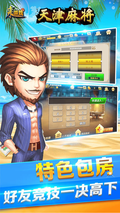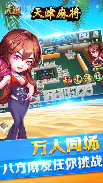 来游戏官方全新力作,引领棋牌手游新时代! =====游戏简介===== 天津麻将-来游戏,以天津地区流行的麻将规则为蓝本开发的一款地方麻将游戏。在游戏中完整的保留了天津麻将的游戏元素,提留、混吊、双混吊、捉5、龙等特点。灵活的玩法配合来游戏的3D界面,欲罢不能。 =====游戏特色===== 【包房】新增特色包房,灵活创建房间,邀请好友竞技一决高下 【回放】边录像边玩牌,牌局回放功能让你在回顾牌局的时候还能炫耀牌技 【比赛】更多赛事活动搭配精美礼品,用惊喜回馈用户 【角色】结合手游经典RPG,带着你的MM上牌桌,享受暴击快感 【宝箱】多样钥匙开启多种宝箱,欢乐多多惊喜不断 ====联系我们==== 微信公众号:laiyouxi 客服电话:4000051827 >>来游戏——Unity3D引擎打造的休闲竞技类游戏平台,给您身临其境的3D游戏体验<<
