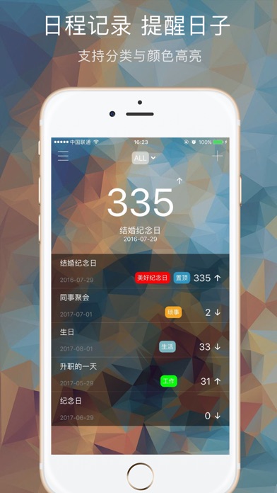 MyDays(纪念日) - 纪录与提醒我重要的日子,重要的日子都值得纪录 为什么要用 MyDays 呢: 相信您一定会有这样的想法:如何可以管理这些对我重要的日子,计算距离这些美好的日子还有多长时间就会到来。 MyDays(纪念日) 可以帮你记录生活中重要日子的小工具,例如:恋人生日还有多少天?还信用卡还有多少天?发工资还有多少天?宝宝出生已经多少天?距离世界末日还有多少天…… MyDays(纪念日) 功能: 【界面简洁】 页面简洁、操作简单,重点内容一目了然,简洁而不简单。 【记录、提醒】 日程、待办、生日、打卡…满足多种记录习惯,并支持各种形式查看 【多一点色彩、多一点选择】 不同的背景不同的色彩,让我们的日子更加优美色彩化。 【分类】 添加分类来管理日子,根据不同的日程与日子,并且选择不同的颜色来高亮这些分类的日子 【安全】 内置两种安全锁模式:数字锁 + 手势锁,当然也支持 TouchId 解锁,保护您重要的纪念日日。 【备份】 iCloud备份与恢复,支持同个苹果账户不同设备下直接备份与恢复,不用担心重要纪念日会不见了。 【通知栏插件】 添加通知栏工具(Today Widget),现在支持四种格式选择,后续更新会有更多精美显式格式选择拉。 【日期排序】 目前支持三种排序模式:默认模式、目标日期正序、最早日期排序。 相信我,这是最美丽的日期倒数日软件,没有之一! What are you 弄啥嘞,还不赶紧下载!! 如果你喜欢Mydays,请考虑在 App Store 留下一个评价,这对我们非常重要。 如果你对有什么意见或者不满,请通过邮件或微博与我们取得联系,感谢。 邮件:immouseshi@gmail.com 微博: 肥猪流程序员,或者直接 @肥猪流程序员