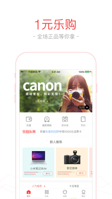 1元乐购,为用户提供全新的购物模式和娱乐体验。您只需花费1元,就有机会获得时下诸多热门商品,玩法创新,每时每刻,充满惊喜。 应用描述 【全新体验】 每件商品,最低1元可得,人人都有机会; 【新人红包】 新人特权,畅享壕礼,下载可得68元红包; 【商品丰富】 从家电数码、日用百货、个护化妆到流行潮品,琳琅满目的商品任你挑选; 【公平公正公开】 公平:所有参与用户均1元起购。 公正:根据全站所有商品的参与记录计算幸运号码。 公开:揭晓过程和计算方式完全透明。 【分享喜悦】 紧张刺激的等待过程之后,马上与朋友分享获得商品的喜悦~ (特别声明:本应用的所有活动与内容跟苹果公司无关)